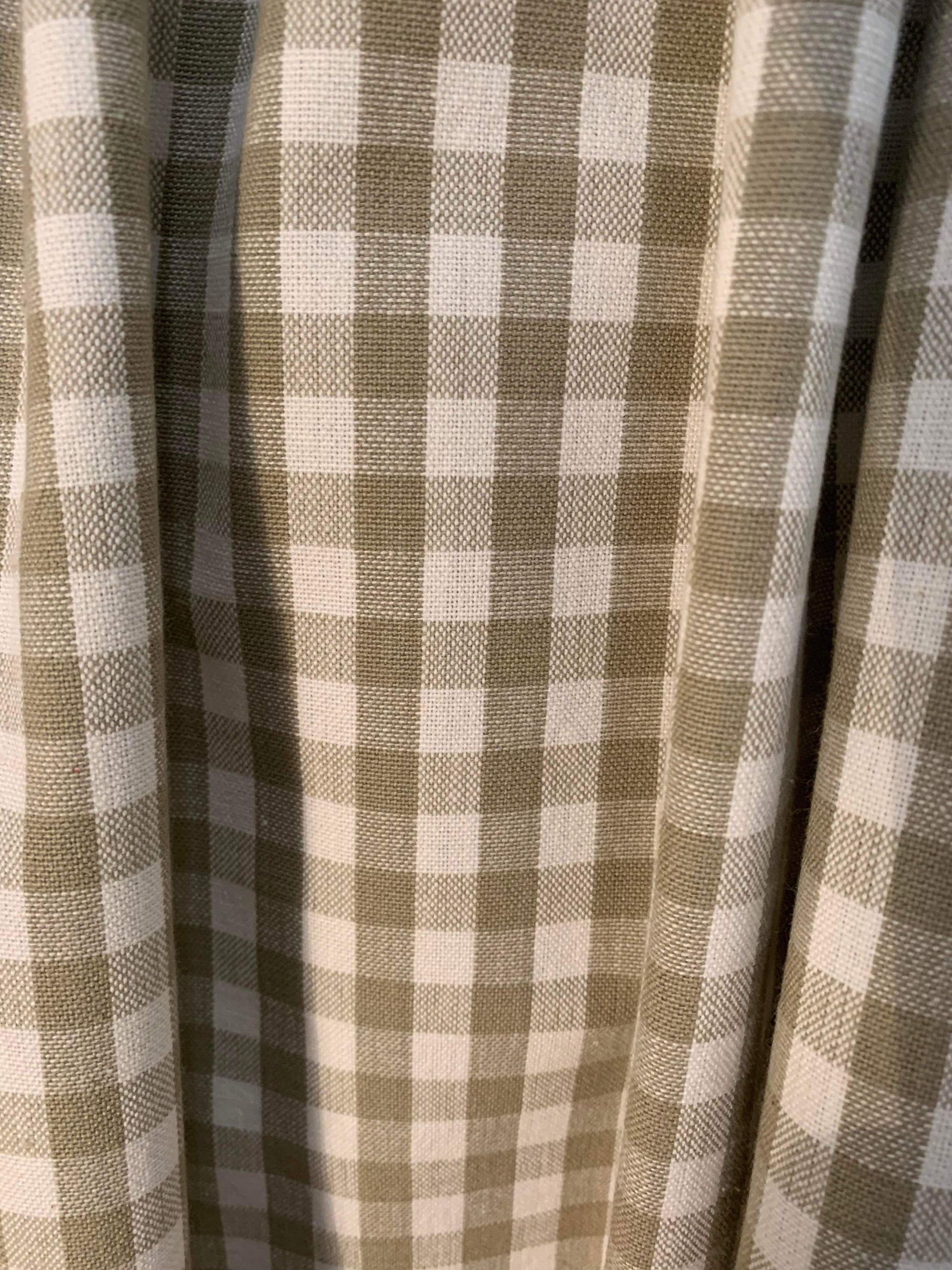 Gingham Hideaway Curtain in Beige. Perfect for hiding washing machines, appliances or even as an alternative to cupboard doors. Handmade using 100% cotton fabric. Will fit standard kitchen worktop sizing, and can be fitted using net curtain wire, or as we have a twist & fix rod.